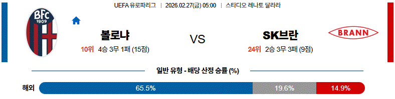 볼로냐는 점유율 전개와 수비 안정감을 바탕으로 주도권을 가져갈 가능성이 큽니다.