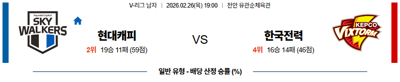 # 홈팀 : 현대캐피탈(19승11패)
