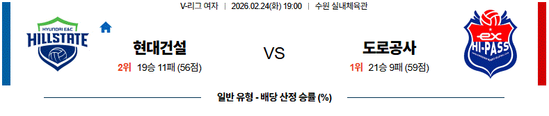 # 홈팀 : 현대건설(19승11패)