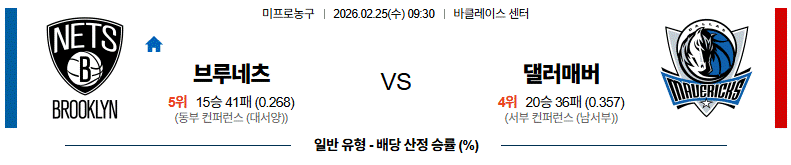 브루클린은 최근 연패 흐름이 이어지고 있지만 홈에서는 비교적 공격 리듬이 살아나는 모습을 보여주고 있다. 클랙스턴 복귀로 골밑 전력이 강화됐고 포터 주니어 중심의 공격 전개도 꾸준하다. 리바운드 약점은 변수지만 홈에서는 활동량과 수비 집중력이 개선되는 흐름이다, 반면, 댈러스는 연패 탈출에 성공했지만 시즌 내내 원정에서 경기력 기복이 심하고 수비 조직력이 불안하다. 주전 부상 공백과 외곽 의존도도 부담이다. 브루클린 승리가 예상된다.