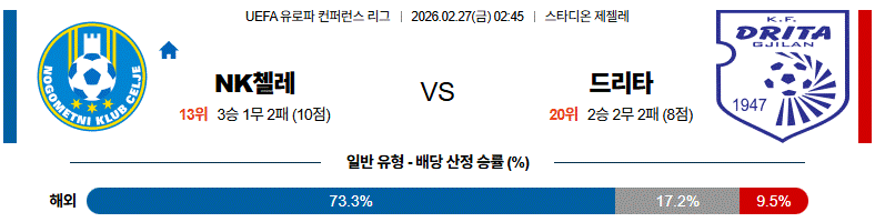 2월 27일 UECL NK첼레 vs 드리타 해외축구분석
