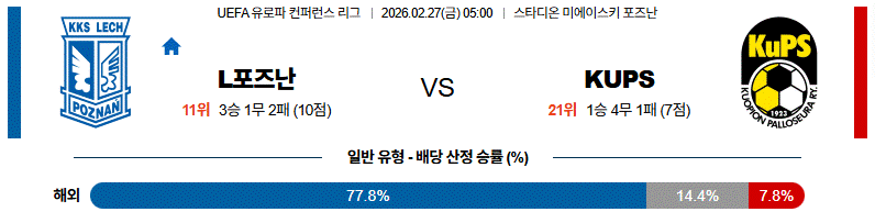 L포즈난이 홈에서 점유율을 확보하며 공격적으로 나설 가능성이 큽니다.