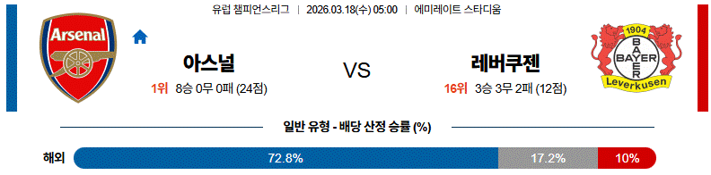 열람 축구 3월 18일 UCL 아스널 vs 레버쿠젠 해외축구분석 1 2 03-16