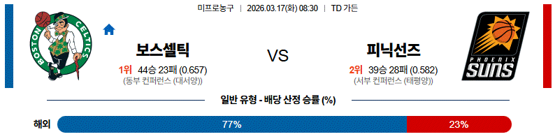 3월 17일 【 NBA 】 보스턴 셀틱스 vs 피닉스 선즈 NBA분석