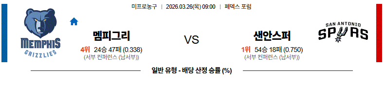 이번 경기는 수비 중심의 접전 양상이 예상되며, 경기 완성도와 홈 이점을 고려할 때 멤피그리이 우세한 흐름입니다.