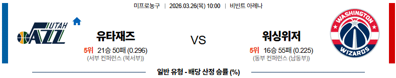 유타재즈와 워싱위저 모두 공격 중심 농구를 펼치는 팀으로, 이번 경기는 난타전 양상이 강하게 나타날 가능성이 높습니다.