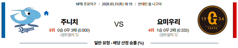 예상 승리팀 : 요미우리 자이언츠