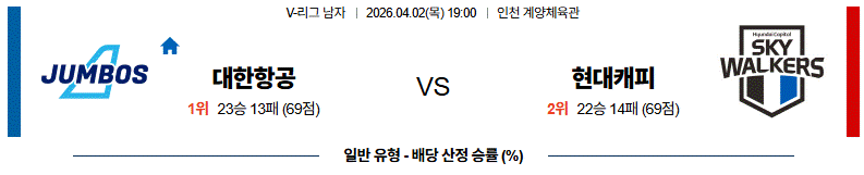 대한항공 vs 현대캐피탈 최종 분석에서는 전체적인 안정성과 홈 이점을 고려할 때 대한항공이 근소하게 우세한 경기입니다.