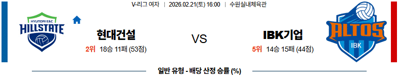 열람 배구 2월 21일 V-리그 여자부 현대건설 vs IBK 기업은행 배구분석 1 9 02-20