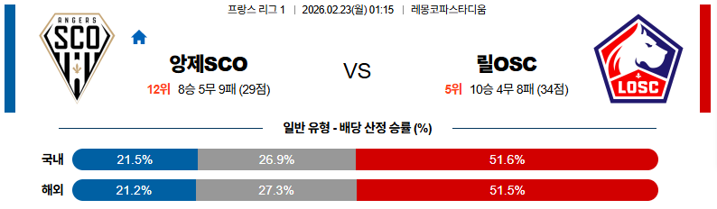 앙제SCO는 수비적으로 라인을 내리며 역습 타이밍을 노릴 가능성이 큽니다.
