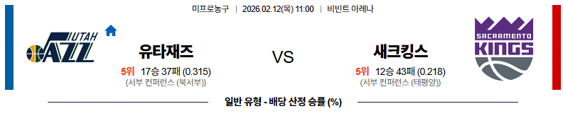 유타는 마이애미 원정 승리로 분위기를 탔으며 홈에서 연승을 노리고 있고, 새크라멘토는 사보니스, 라빈, 머레이 등 주전 4명이 이탈한 전력 공백으로 인해 공수 밸런스가 완전히 붕괴된 최악의 상황입니다.