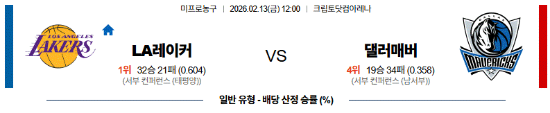 주전들이 대거 복귀하는 레이커스가 전력이 붕괴된 댈러스의 골밑과 외곽을 동시에 폭격하며 여유로운 핸디캡 승리를 가져갈 것입니다.