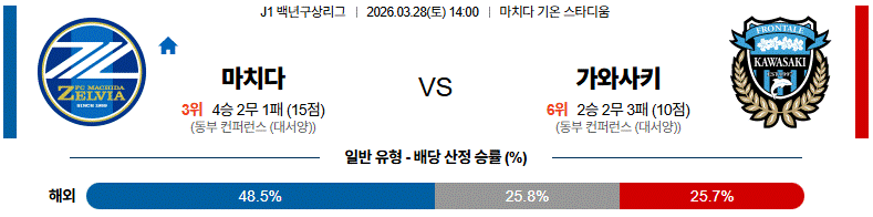⚠️ 전술 상성, 공간 공략 포인트, 수비 전환의 완성도까지 모두 감안하면 이 경기는 마치다가 끊어낼 흐름이다.