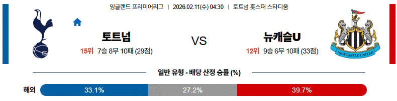 2월 11일 EPL 토트넘 vs 뉴캐슬U 해외축구분석