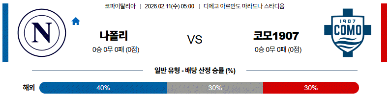 전체 흐름은 나폴리가 주도권을 쥐는 가운데 코모1907의 역습이 변수로 작용할 수 있는 경기입니다.