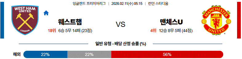 경기 흐름은 맨체스U가 공을 쥐고 운영하는 가운데, 웨스트햄의 역습이 변수로 작용하는 양상이 예상됩니다.