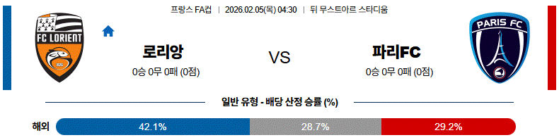 파리 FC의 수비적인 대응이 변수지만, 홈에서의 경기 운영과 전력 안정성에서는 로리앙이 앞서는 매치업입니다.