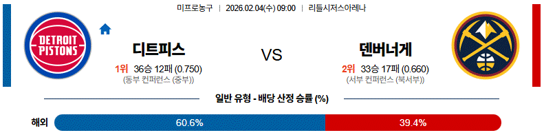 # 홈팀 : 디트로이트(36승12패)