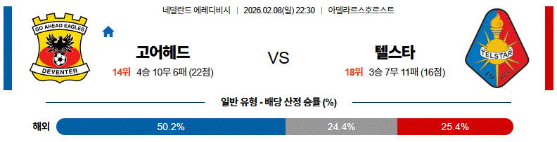 텔스타는 수비적으로 버티겠지만 실점 위험이 높아 공방전 속 득점이 이어질 확률이 높아 보입니다.