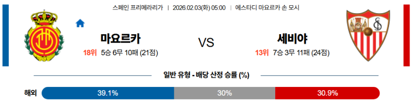 결국 마요르카가 홈에서 준비해 온 좌측 공격 루트와 안정된 수비 블록을 바탕으로, 세비야의 불안한 원정 경기력을 공략해 승리를 노려볼 만한 한 경기라고 정리할 수 있다.