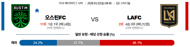 그래서 이 승부는 LAFC가 전환 속도와 침투 완성도로 오스틴 수비의 균열을 먼저 만들 가능성이 더 크다.