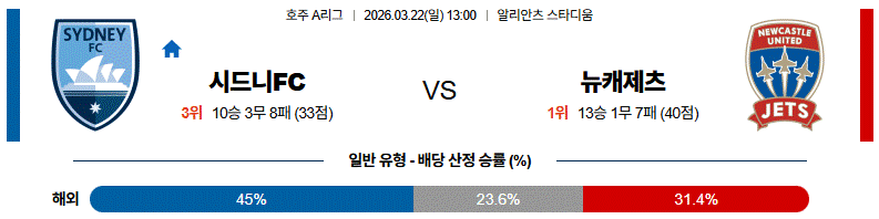 뉴캐슬 제츠도 단발성 역습은 만들 수 있겠지만, 수비 커버가 한 박자씩만 늦어져도 시드니FC가 원하는 슈팅 장면이 반복될 여지가 크다.