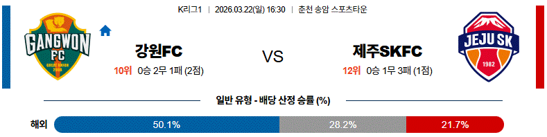이번 매치업은 강원이 잘하는 장면과 제주가 불안한 장면이 정확히 한 지점에서 만나는 경기다.