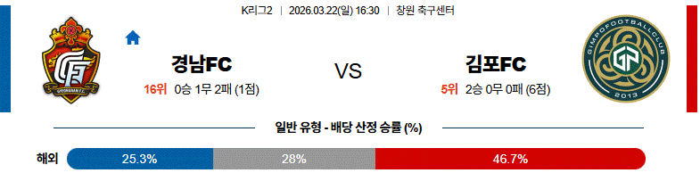 결국 이 경기는 경남의 약점이 다시 드러나는 매치업으로 흘러가며, 김포가 전술 상성 우위를 결과로 연결할 가능성이 높다.