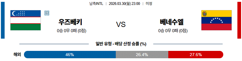 그래서 이 경기는 홈에서 압박 강도를 끌어올릴 수 있는 우즈베키스탄이 경기 양상을 주도하고, 베네수엘라는 버티는 시간이 길어질수록 운영 완성도가 떨어질 가능성이 더 높다.