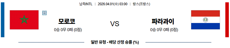 4월 01일 남축INTL 모로코 vs 파라과이 해외축구분석