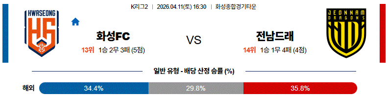 이번 경기는 화성이 전술적인 준비도에서 앞서며 결과까지 챙길 수 있는 타이밍으로 보인다.