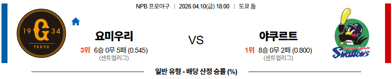 요미우리 VS 야쿠르트 : 도쿄 더비의 화력 대결과 선발 야구