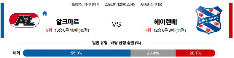 알크마르 vs 헤이렌베 경기 분석에서는 홈 이점과 전력 우위를 모두 갖춘 알크마르가 유리한 매치입니다.