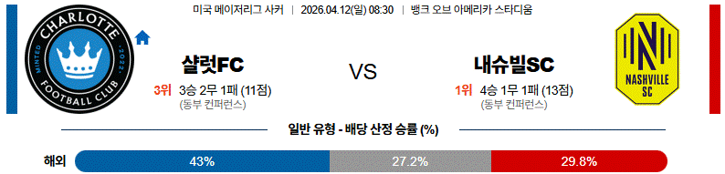반면 내슈빌은 최근 좌우 밸런스가 흔들리는 데다, 클럽 아메리카와의 북중미 챔피언스컵 일정 직후라 체력 부담까지 크게 안고 들어간다.