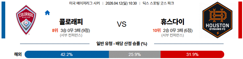 ⚠️ 박스 안 수비 대응력과 크로스 대처 차이를 감안하면 이 경기는 콜로라도가 흐름을 유리하게 끌고 갈 가능성이 높다.