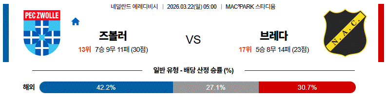 다만 브레다의 공격력이 제한적인 만큼, 경기 흐름은 즈볼러가 지속적으로 압박을 가하는 양상으로 이어질 가능성이 큽니다.