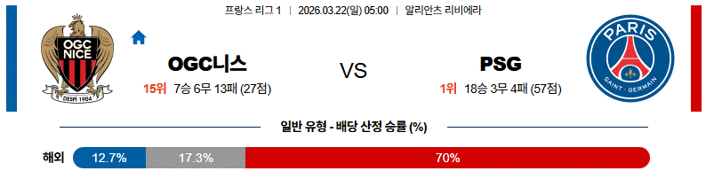 다만 니스의 수비 저항으로 인해 경기 초반은 다소 팽팽하게 진행될 수 있습니다.
