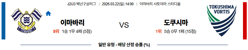 ⚠️ 표면 전력은 도쿠시마가 앞서 보여도, 전술적 맞물림과 중원 싸움의 결을 보면 이번 경기는 이마바리가 뒤집을 타이밍이다.
