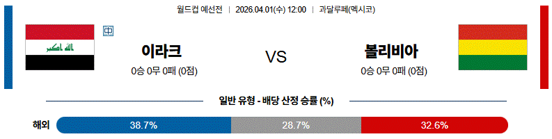 특히 이라크의 수비 조직력이 유지될 경우 볼리비아의 공격 전개는 제한될 가능성이 큽니다.