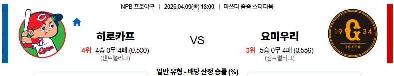이번 NPB 경기는 수비 중심의 히로카프와 공격 밸런스를 갖춘 요미우리의 대결입니다.