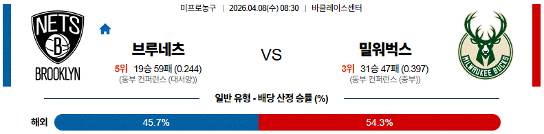 - 브루클린이 홈에서 템포를 끌어올리며 맞서겠지만, 밀워키가 인사이드 공략과 자유투 생산으로 경기 흐름을 통제할 가능성이 높습니다. 전반 접전 뒤 후반 6~10점 차 승부로 정리될 그림이 가장 무난합니다.