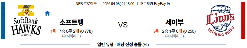 소프트뱅크 VS 세이부 : 리그 정상급 화력과 장타 대결