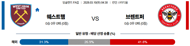전체적인 전력과 홈 경기 이점을 고려하면 웨스트햄이 근소하게 유리한 흐름을 가져갈 가능성이 있습니다.