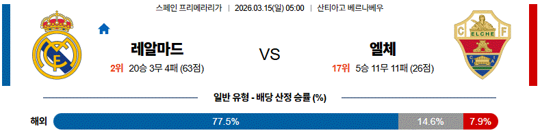 열람 축구 3월 15일 라리가 레알 마드리드 vs 엘체 해외축구분석 5 03-13