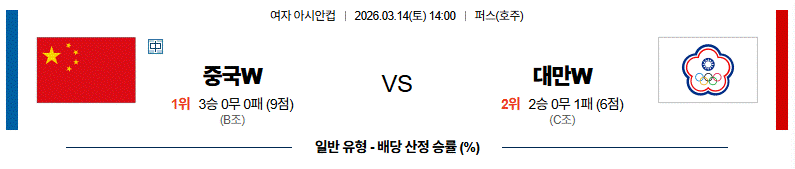 열람 축구 3월 14일 여자 아시안컵 중국 vs 대만 해외축구분석 5 03-13