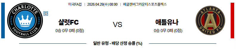 열람 축구 4월 29일 미국FA컵 샬럿FC vs 애틀유나 해외축구분석 2 04-27