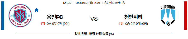 다만 용인 역시 시즌 초반 조직력이 완전히 다듬어진 상태는 아니기 때문에, 라인 간격이 벌어지는 순간에는 천안 역습 한두 번이 실점 위기로 이어질 가능성도 있다.