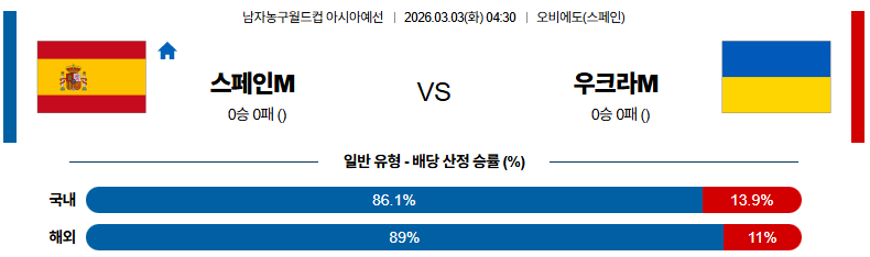 홈과 원정을 바꿔서 펼쳐지는 리턴매치 경기다. 스페인은 최근 3연승 상승 흐름 속에서 강한 압박과 리바운드 우위를 바탕으로 안정적인 경기 운영을 이어가고 있다. 하이메 페르난데스(PG)와 페란 바사스(PG)의 외곽 득점, 알렉스 레예스(SF)와 오리올 파울리(SF)의 활동량이 공격 밸런스를 유지하고 있으며 후반 집중력과 수비 전환 속도가 뛰어난 모습이다. 또한, 카르데나스(PG)의 경기 조율과 로테이션 안정도 긍정적이다. 반면, 우크라이나는 전반 경쟁력은 유지하고 있지만 후반 체력 저하와 외곽 수비 약점이 반복되고 있으며 핵심 빅맨 공백으로 리바운드 열세가 이어지고 있다. 코블랴르(PG) 중심 공격은 위협적이지만 득점 지원이 제한적인 상황이다. 스페인 승리가 예상된다.