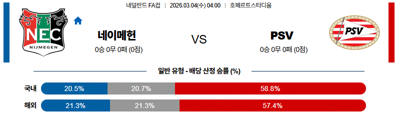 네이메헌은 패스 전개로 대응하겠지만, 경기 주도권 확보에서 어려움을 겪을 가능성이 큽니다.