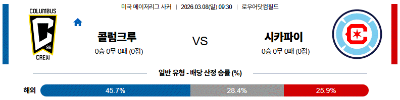 3월 08일 메이저리그사커 콜럼버스 크루 vs 시카고 파이어 해외축구분석